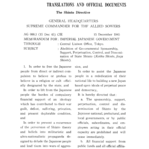 ‡Scan of the Shinto Directive, issued by occupational authorities.