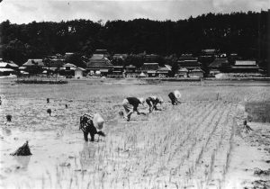 ‡Photograph of farmers working a field in Okayama Prefecture.